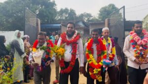 Mr. Naleer, the Additional Director General of Eastern Province, along with his Secretary and Treasurer distributed School Books and School Bags to the 43 Children on their first day of Schooling. This School is known as Mega Pre School in Five Colony ( Chalambeikkerni 01) in Navithanveli, Ampara.